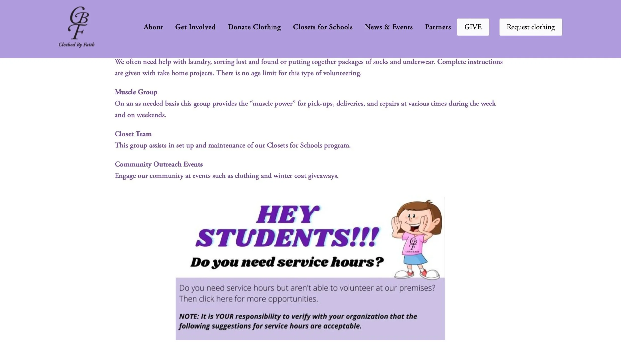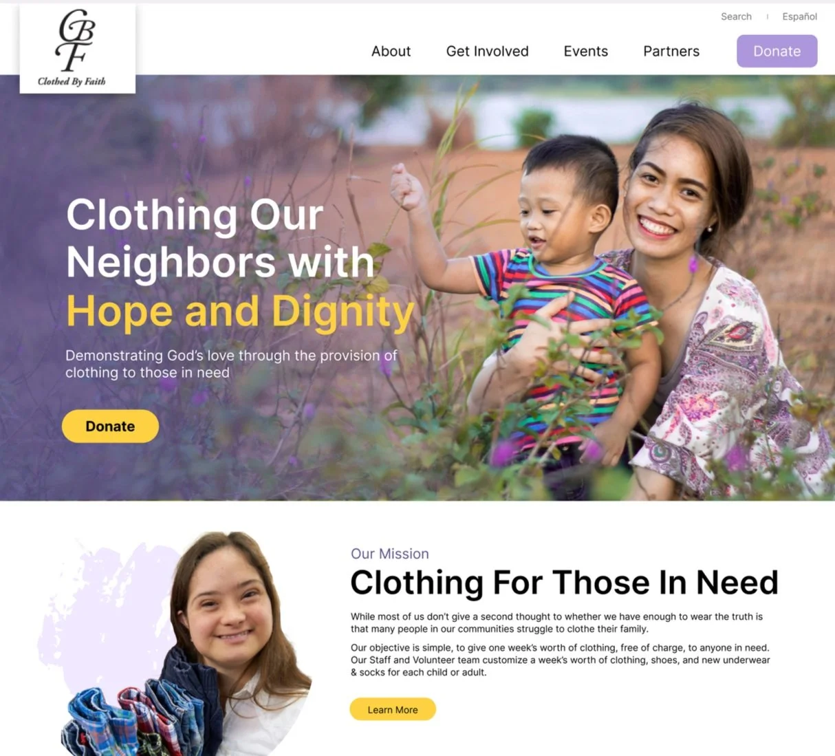 In the very diverse and populated city of Houston, there are hundreds of non-profits working to change lives - Clothed by Faith being one of them. This particular non-profit organization, which works to provide the less fortunate with clothing, really impressed me with their strong values in faith and dignity. After being a volunteer for CBF, I gained an appreciation for the organization, leaving me with a strong desire help further spread their mission. I planned to do so by improving their website’s user experience to improve usability and accessibility.
